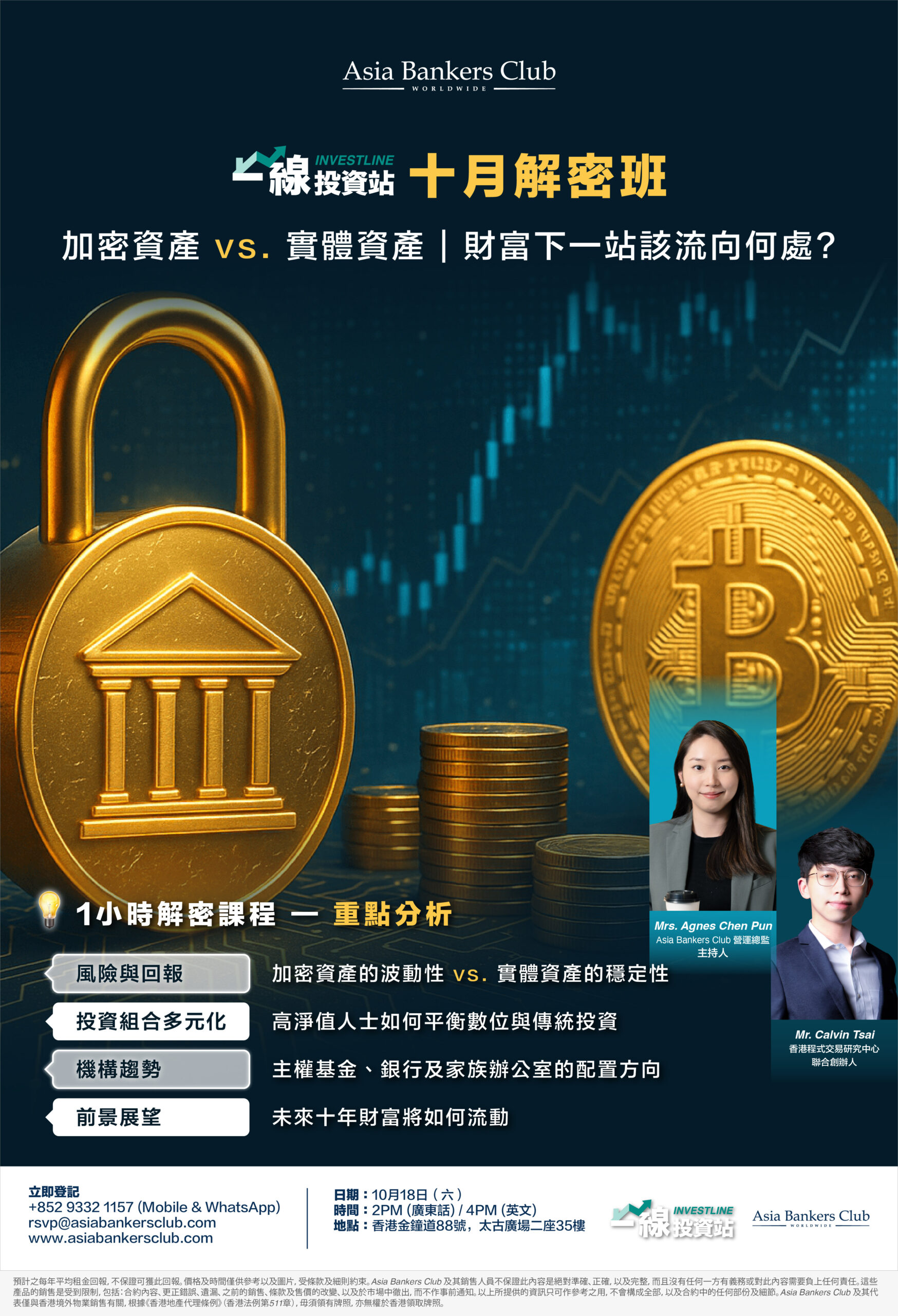 在本次課程中,Agnes 將分享一系列極具實用性的洞察與策略,助您精明布局全球資產: