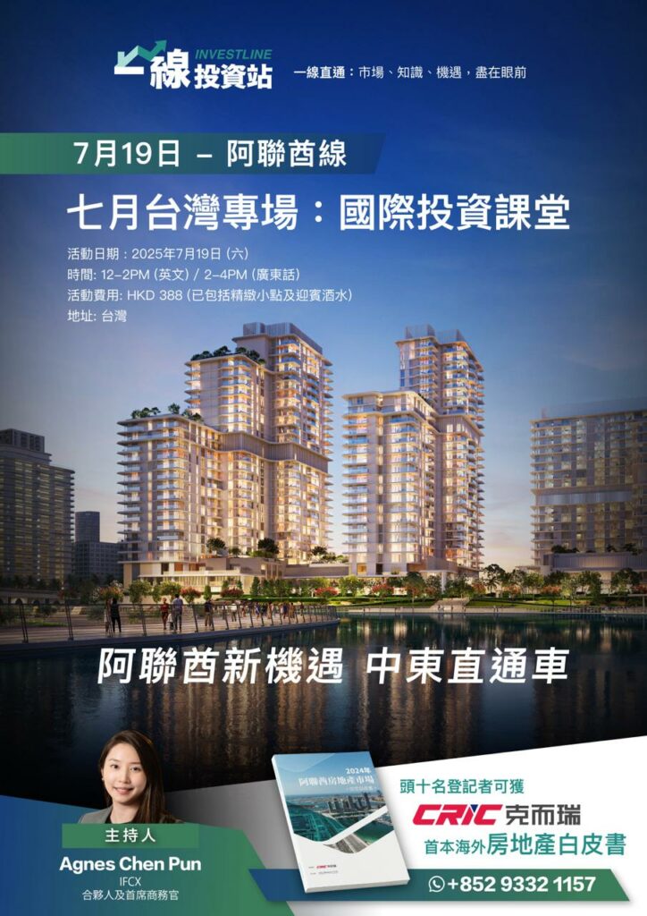 《一線投資站:阿聯酋港人投資新視野》 將由親身在當地生活、創業超過12年的香港人,聯同資深投資及身份規劃顧問,為你深入解構阿聯酋的投資實況、黃金簽證途徑,以及跨境資產架構部署。