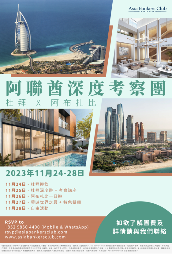 Asia Bankers Club 的專業團隊分布在香港、杜拜、泰國和越南,更可以輕易取得阿聯酋各大頂尖發展商物業的第一手資訊及最新樓花及現樓項目。Asia Bankers Club 與多間阿聯酋知名發展商合作,包括 Emaar, Aldar, Damac, Sobha 等,輕易獲取當地優質項目最新資訊、了解最新的房地產項目,並協助安排參觀和購買。Asia Bankers Club 亦會就項目進行調查及分析當地市場概況,透過與發展商及賣家的直接談判,為投資者爭取最佳及理想的投資機會。