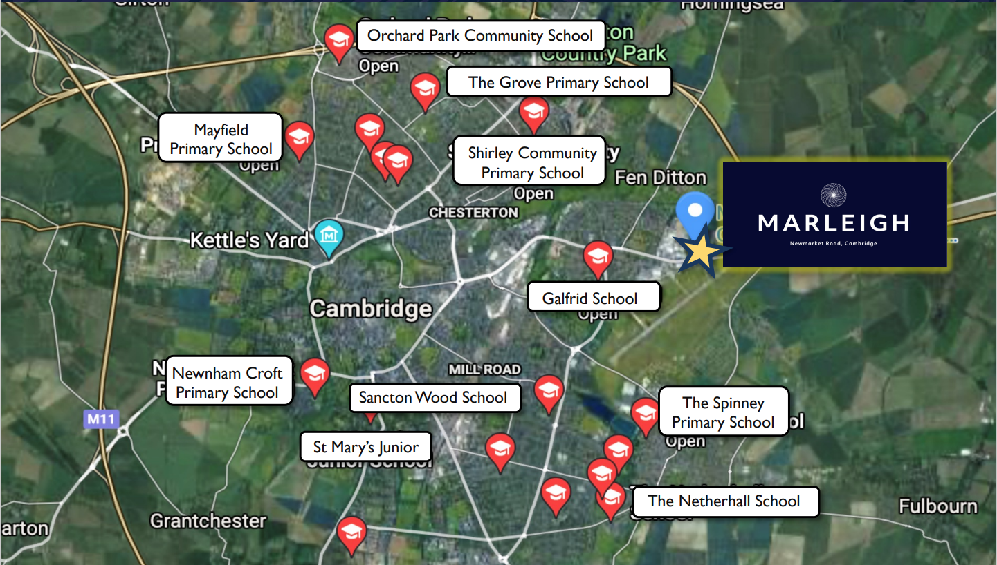 Marleigh位於劍橋市中心CB5區,私立學校林立。居民可以在幾分鐘內通過騎自行車或開車抵達劍橋北站和劍橋站。未來東西部鐵路將把劍橋連接到 Milton Keynes 和牛津。