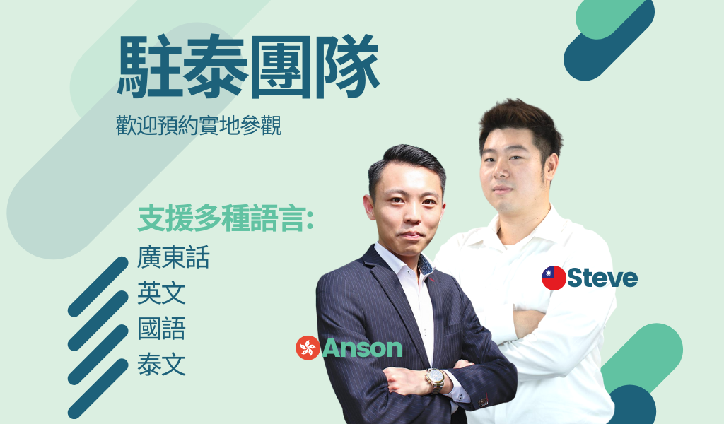 泰國專業團隊支援多種語言,包括廣東話、普通話、英文和泰文,專人為你物業導航。立即與我們當地團隊預約現場參觀,歡迎聯繫我們了解更多。