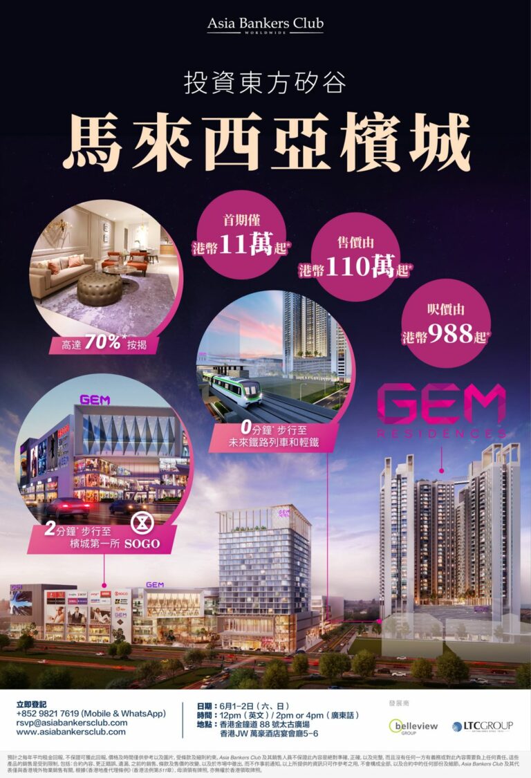 Disclaimer: Rental yield is projected but not guaranteed. Price and travel time are for reference only. Terms & conditions apply. Advertised images are computer generated renderings and are for reference only. The information, text, photos contained herein are provided solely for the convenience of interested parties and no warranty or representation as to their accuracy, correctness or completeness is made by Asia Bankers Club or the sellers, none of whom shall have any liability or obligation with respect thereto. These offerings are made subject to contract, correction of errors, omissions, prior sales, change of price or terms or withdrawal from the market without notice. Information provided is for reference only and does not constitute all or any part of a contract. Asia Bankers Club and its representatives work exclusively in relation to properties outside Hong Kong and are not required to be nor are licensed under the Estate Agents Ordinance (Cap. 511 of the Laws of Hong Kong) to deal with properties situated in Hong Kong.