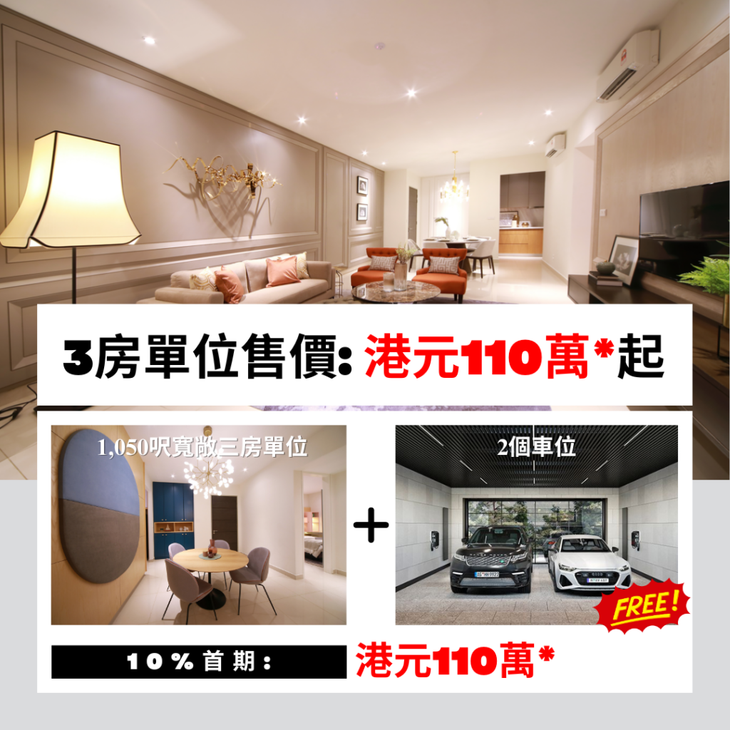 ✧3房大單位售價只需港元110萬*起 | 加送2個車位*
