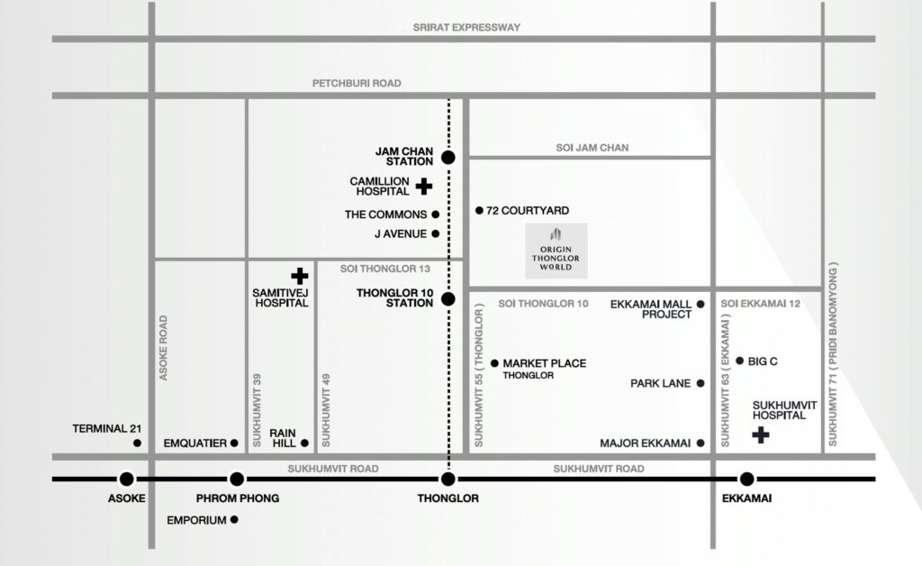 ✧優越地理位置Thonglor Soi 10,毗鄰曼谷其他核心地段如Ekkamai、Asok及Siam等,盡享市中心便利