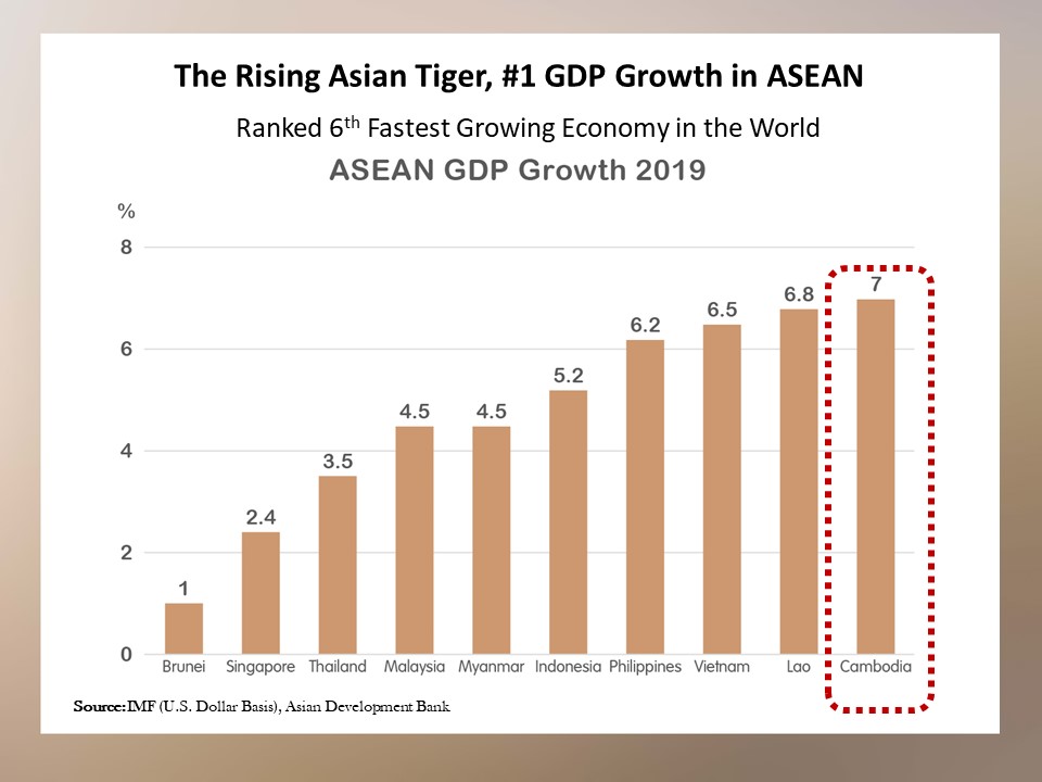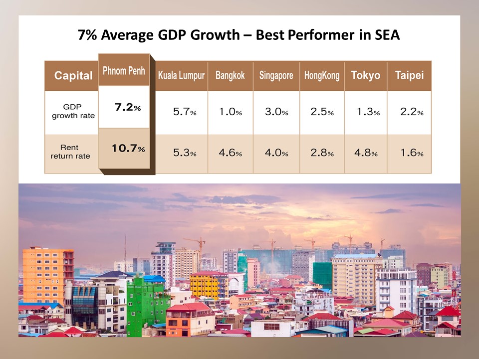 Cambodia has become one of the fastest-growing economies not only in Asia, but also in the world. Despite COVID-19, its strong control over the pandemic grants it a strong forecast of a 5.9% increase in GDP in 2021. With USD as the de facto currency, a strategic location at the centre of Southeast Asia, and favourable trade agreements with multiple countries, the country has attracted strong foreign direct investment, leading to the rise of the middle-class population who demand decent housing options in the capital Phnom Penh.