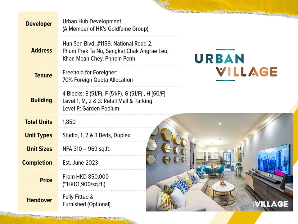 Asia Bankers Club is introducing an exclusive opportunity in the New CBD Mean Chey in Phnom Penh. Situated in the largest creative hub in Southeast Asia, the award-winning Urban Village is presented by the largest Hong Kong developer in Cambodia, bringing the superior Hong Kong living standard to Phnom Penh. Featuring an array of amenities in the development, the project is a perfect investment choice as the demand for quality condominiums is surging in the country. Join us to understand the real estate market of Cambodia and let us answer the questions you may have.