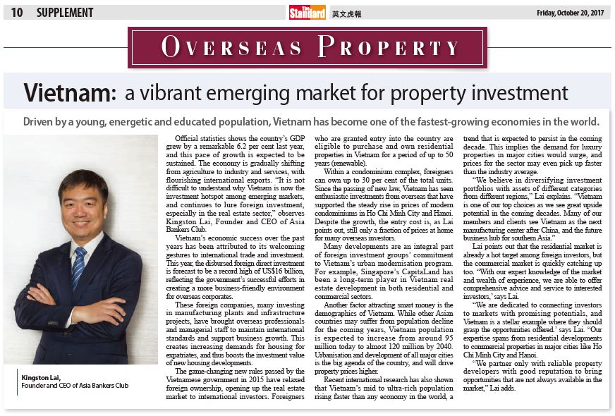 Founder & CEO Kingston Lai discussed with Vietnam Property Investment on the Standard