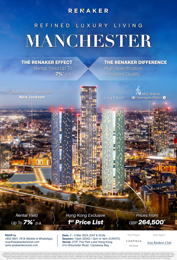 As the sole agent, we are proud to introduce its 1st official launch in Hong Kong with the 1st price list starting from £264,500*. The rental yield of Contour is expected to reach up to 7%* p.a. Special offers are available exclusively for our seminar guests. Don’t miss out on this chance to explore the magic of “The Renaker Effect” and secure your investment in one of the UK’s most exciting cities!