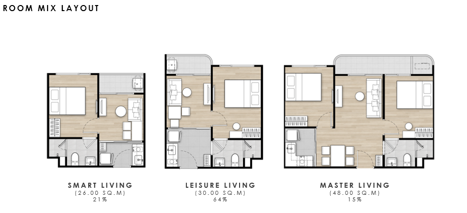 1房單位: 15,000 – 18,000 泰銖 ; 2房單位: 30,000 泰銖