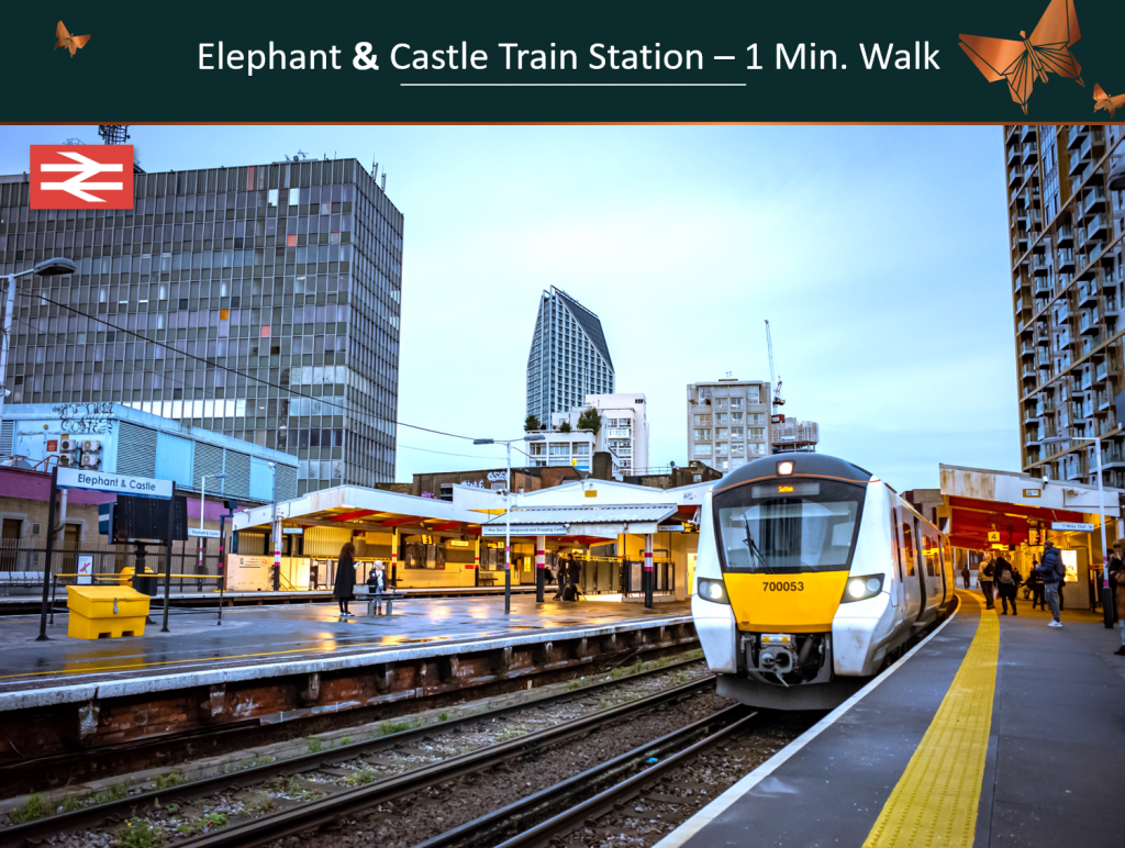 - 1-min* walk to Elephant & Castle Train station