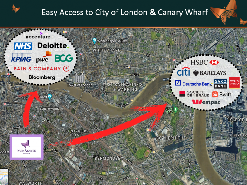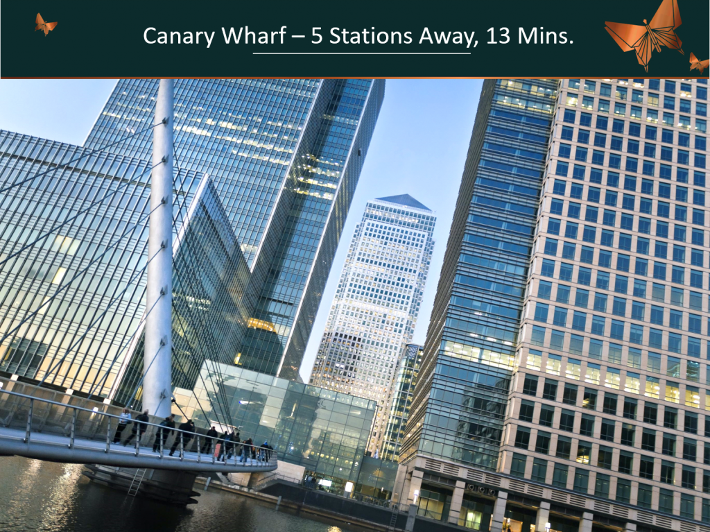 - International headquarters in the financial and technology sectors within 15 mins in Canary Wharf and Central London, strong tenant pool