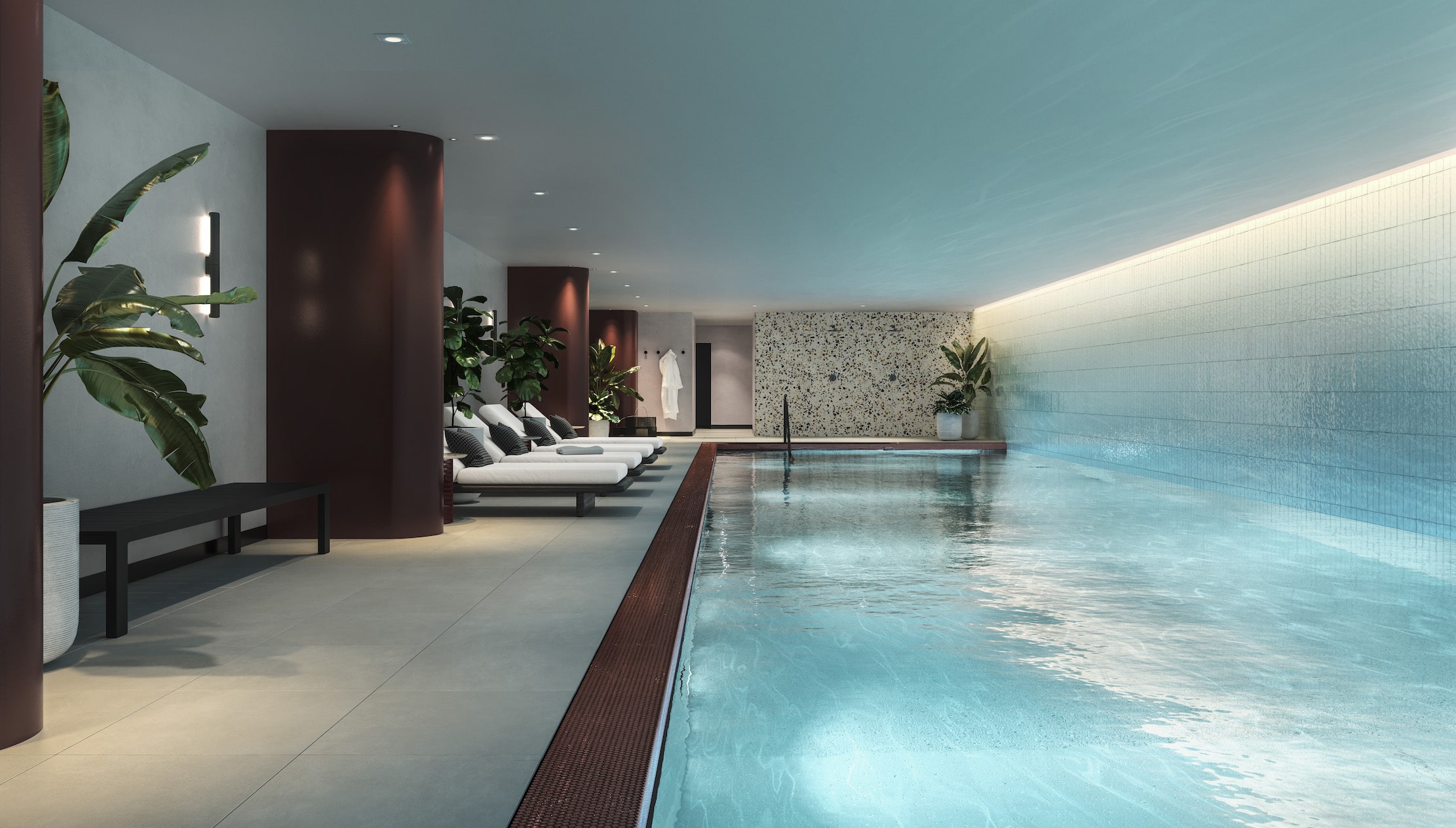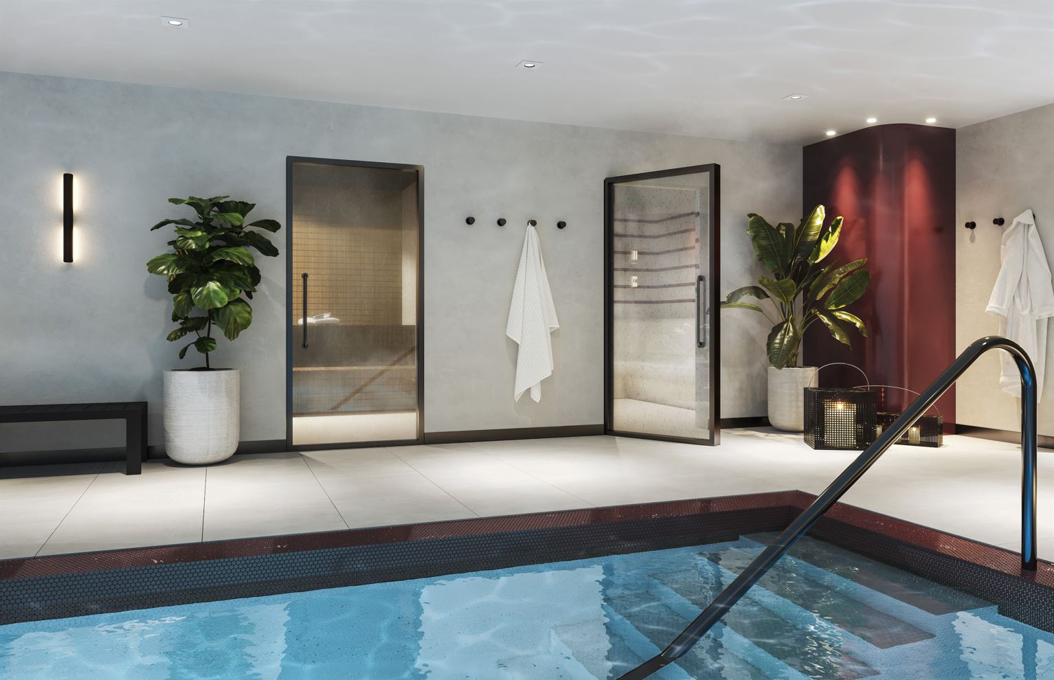 設施 17 項奢華會所設備包括24小時禮賓服務、靈活的辦公空間、20米室內遊泳池、桑拿室和蒸汽房、Peloton健身館、單車訓練室、瑜伽室、天台跑道和電影院等