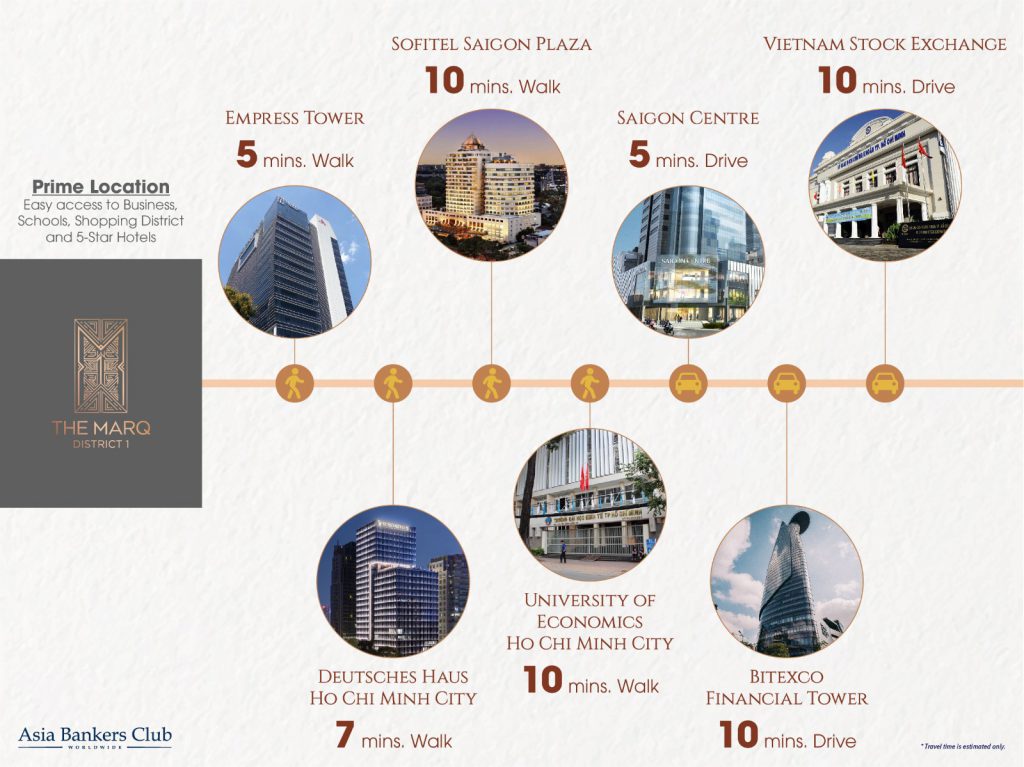 Asia Bankers Club is introducing a luxury residential development by the renowned regional developers Hongkong Land and An Khang to investors. THE MARQ is a rare investment opportunity created to become the jewel crowning the city city skyline, combining a luxury living and unbeatable location in the heart of District 1. It is positioned at the leading investment destination with close proximity to Ho Chi Minh City’s current and future Central Business Districts, where the supply of new buildings is scare. Favoured by overseas investors, local elites and high-income professionals, THE MARQ is expected to be in high rental demand in the future.