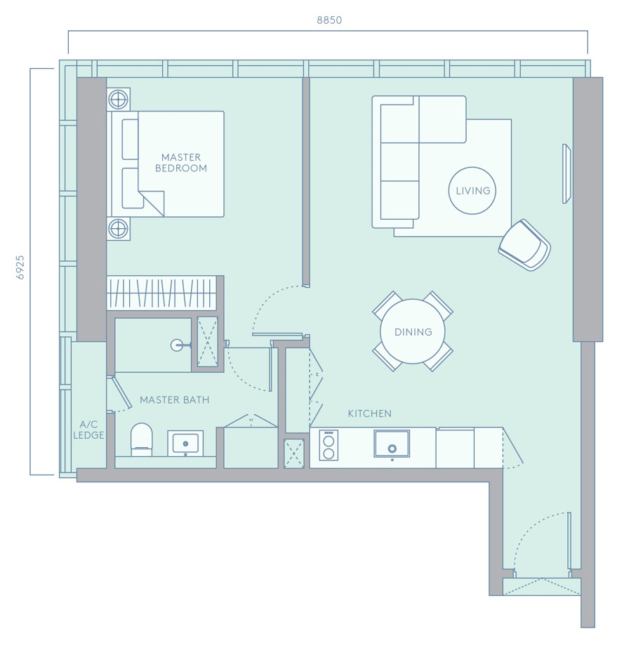 1房 + 1廁 (700平方呎)