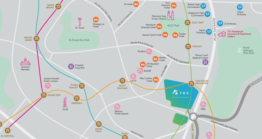 TRX Residences 與首都吉隆坡最大的地鐵換乘站無縫連接,並可方便通往各主要公路,勢必成為綜合性最高的住宅項目