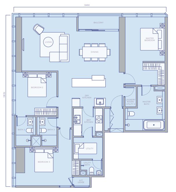 3房 + 3廁 + 露台 (1,259平方呎)