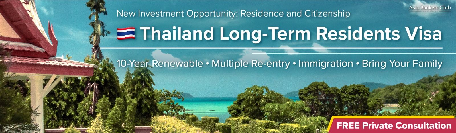 Thailand has been the world’s top tourist destination and second home in Southeast Asia due to the tropical climate, urban living and affordable living costs. Several visa schemes are available in Thailand to attract foreign wealthy citizens. Asia Bankers Club offers a professional and comprehensive one-stop overseas investment services, including property investment and visa applications, to facilitate your wealth enhancement and ideal second home.