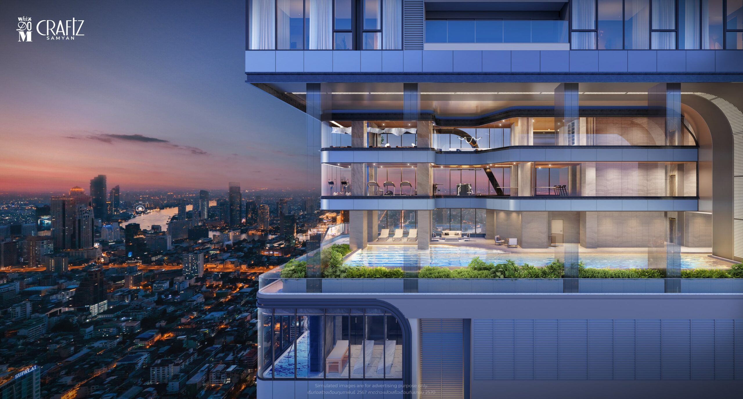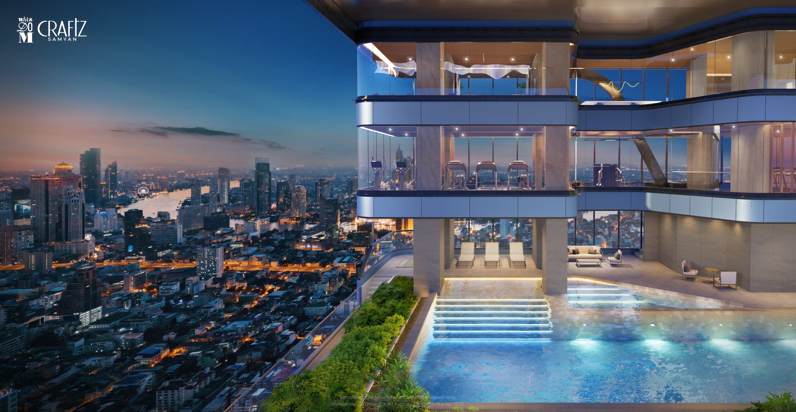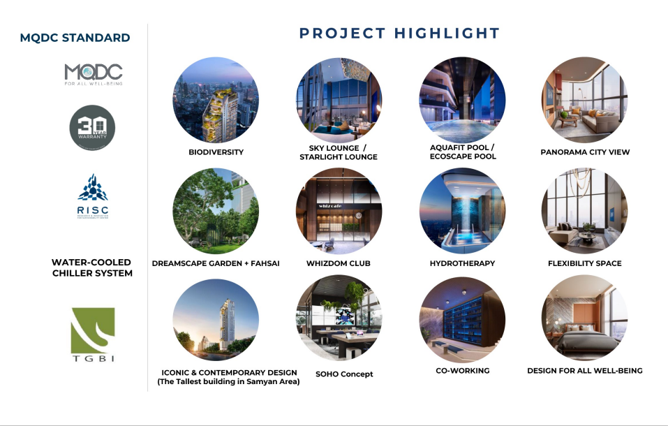 Whizdom Craftz Samyan is the latest freehold condos in the city centre of Bangkok, presented by one of the top 3 developers MQDC. It is well-known as its quality by providing 30-year warranty and flagship projects such as Iconsiam. Whizdom Craftz Samyan offers simplex, duplex, loft and penthouse starting from HKD 1.7M*. Its new-age living responds to your dynamic lifestyle with deluxe facilities, such as swimming pool and spa, gym, sky lounge, rooftop garden, pool terrace, star state and co-working area etc.
