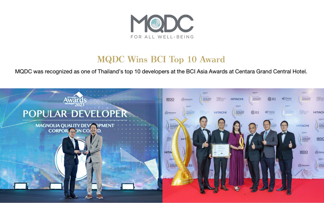 MQDC, or Magnolia Quality Development Corporation Limited, is a reputable real estate developer in Bangkok, Thailand. Known for their high-quality projects, MQDC focuses on sustainable development and incorporates green design principles. Their projects, such as Magnolias Ratchadamri Boulevard and Whizdom 101, offer luxurious living spaces with modern amenities and a connection to nature.