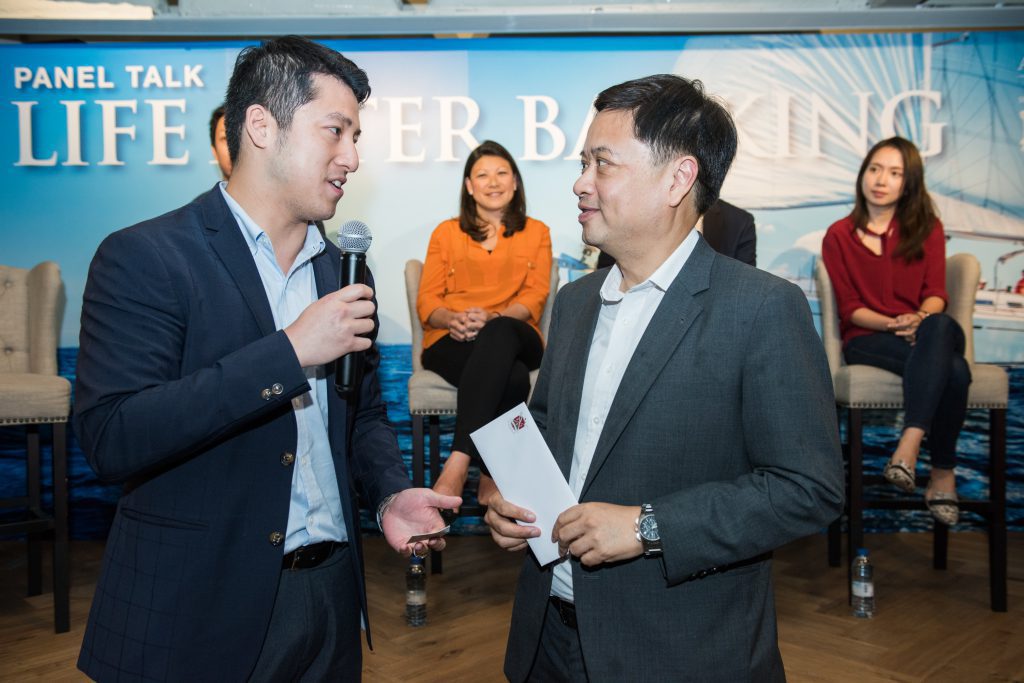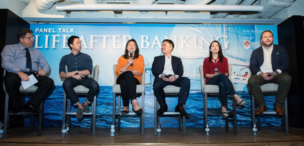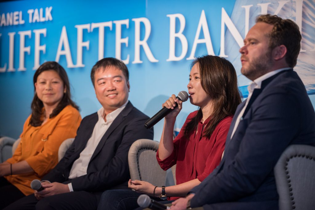 On why they decided to quit banking, panellists agreed that it was not an easy decision. It was an idea that had been brewing in mind before putting into action. ‘It was when I realised that my real passion is to work with people who have creative ideas, and that I enjoy seeing things come to life, that I resolved to focus my energy on that. Few people remain in banking all their lives and it is very important that you have an idea of what you are passionate about, that can guide you in your life after banking.’ Ms. Yeone Fok, Founder at SparkRaise.com, said when discussing her decision to leave. Mr. Shaun Kraft, Chief Financial Officer at CompareAsiaGroup recalled how he made the decision to quit, ‘I reached a point in my life that I had to decide whether I wanted to do banking for the rest of my life or something different. I was an adviser to company CFOs during my banking days and one day I decided to roll up my sleeves and get operationally involved in business. It was difficult to go from a comfortable life to something new, but it was the best decision I’ve ever made.’