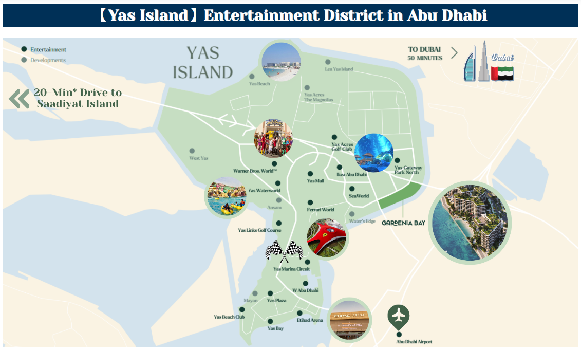 - Within a 10-min* drive to SeaWorld, Ferrari World, Yas Beach, Warner Bros World, F1 Fanzone and more