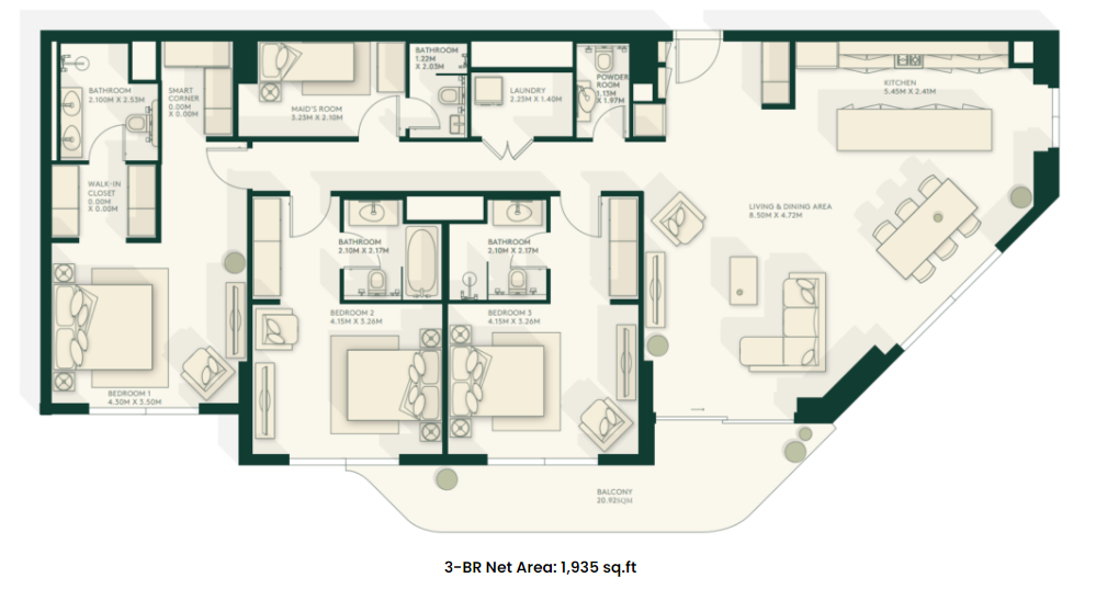 - Private exceptional amenities including swimming pool, gym, dog park, beach club, yoga zone, mosque, BBQ area, private cinema and more